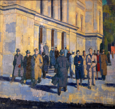 Johan Johansson föddes i Lund 1879, han avlade gesällprov i dekorationsmåleri och fick efter detta ett resestipendium. Mellan 1899-1914 reste han runt i Europa och studerade, bland annat, i Berlin, München och Paris. När han kom tillbaka till Lund 1914 övertog han Anders Trulsons atelje på Clemenstorget. Var en medlem i konstnärsgruppen De Tolv. Tavlan 'Hösttermin' visar ett myller av folk på väg in och ut genom universitetshusets portar.